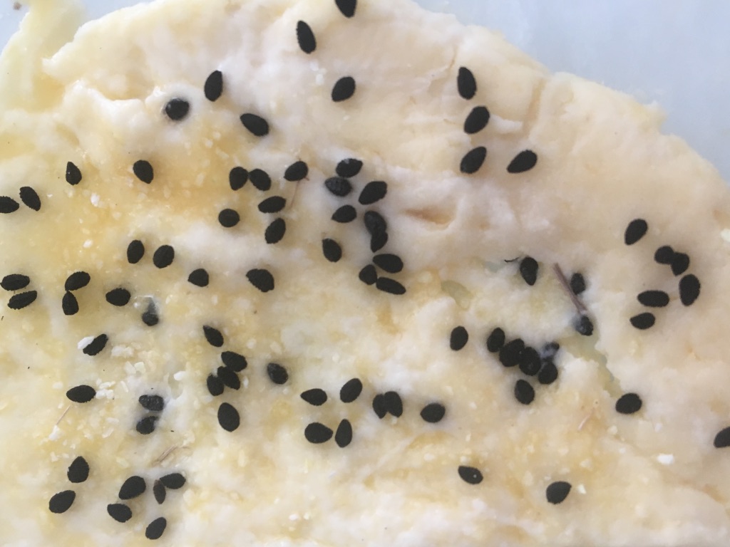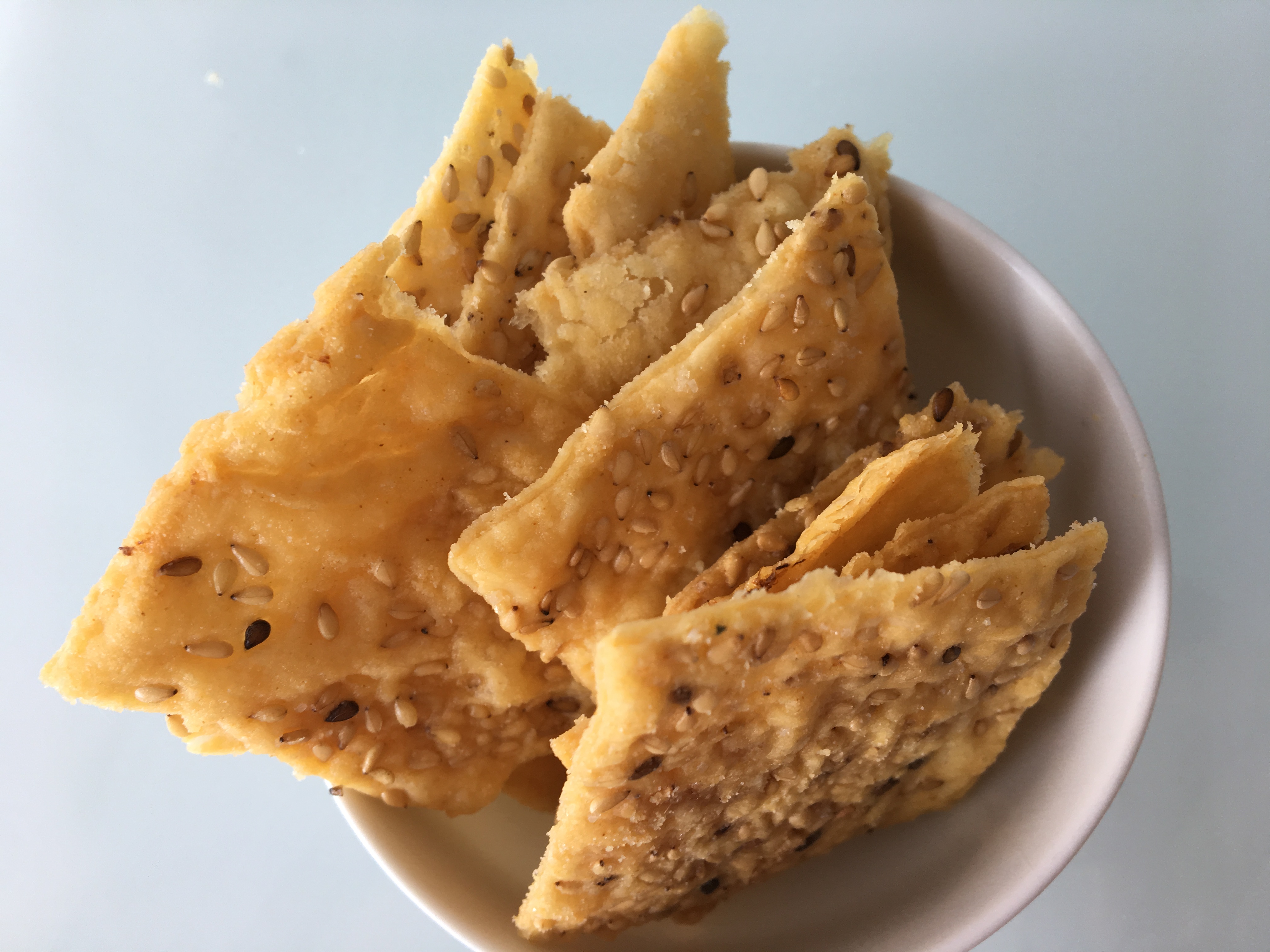 A few days ago, finding myself with a bag of Kenji Lopez-Alt’s excellent Neapolitan pizza dough fermenting in the refrigerator, I gave it a go. Using 100 grams of dough I followed the recipe for Kouign Amann in my last post, sans sucre. It worked like a charm, puffing up beautifully in the oven. I rolled out the leftover scraps very thin and sprinkled them with seeds and salt. Those crackers were so deadly I asked my husband to hide them somewhere. (He ate them.)