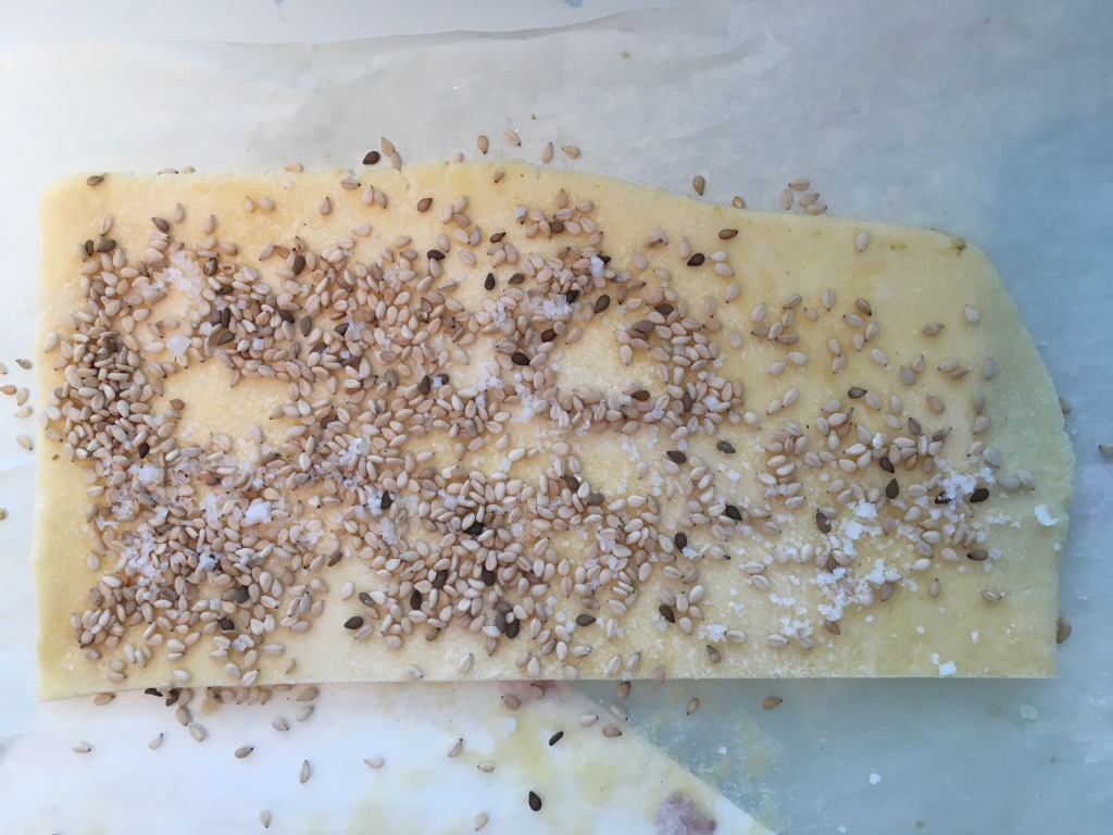 As usual, one thing leads to another in the kitchen. As I mentioned in my last post I was not entirely comfortable publishing that recipe because I live a sugar-free life and those delicious pastries contain a fair bit of the white stuff. I even tried laminating the dough with honey to see if it might make a good sugar substitute (it almost always does). But working with soft butter and runny honey made the lamination process very messy. The honey-filled pastry also didn’t turn out as flaky as it should. It had a cakey texture, which I suspect has to do with the hygroscopic quality honey has. So I decided to leave the sugar out of the recipe entirely to find out what a savory version of this pastry looked like. I figured the result should be a reasonable stand-in for puff pastry.